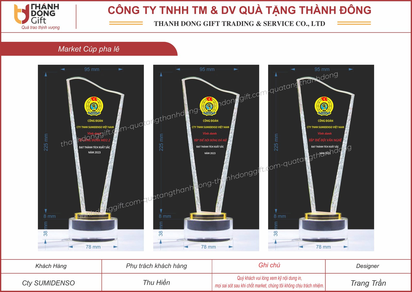 Cúp pha lê vinh danh - Sumidenso